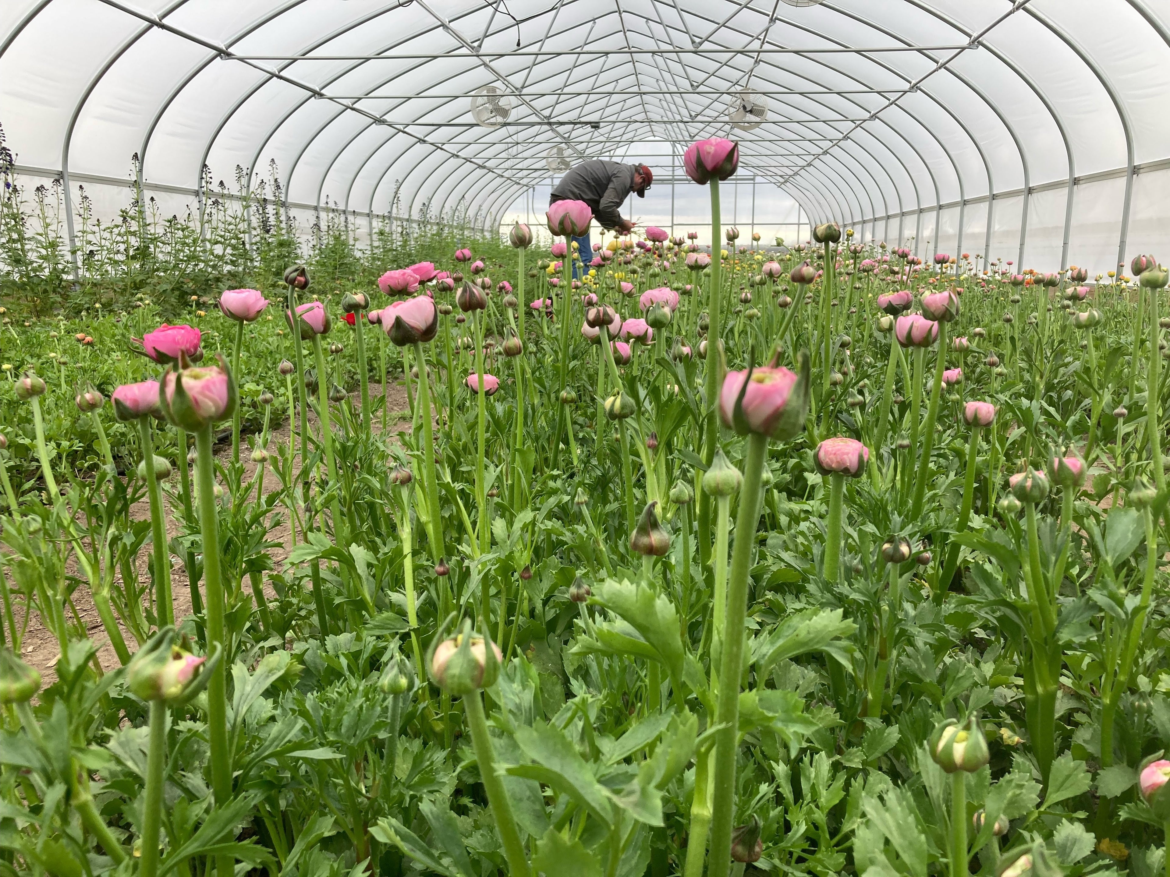 By the beginning of 2020, we were ready to take the next leap of faith by building our first greenhouse. This allowed us to extend our growing season, as well as grow more high-quality specialty crops such as ranunculus, eucalyptus, and lisianthus. Since 2020 we’ve added two additional greenhouses, as well as expanded our field production.